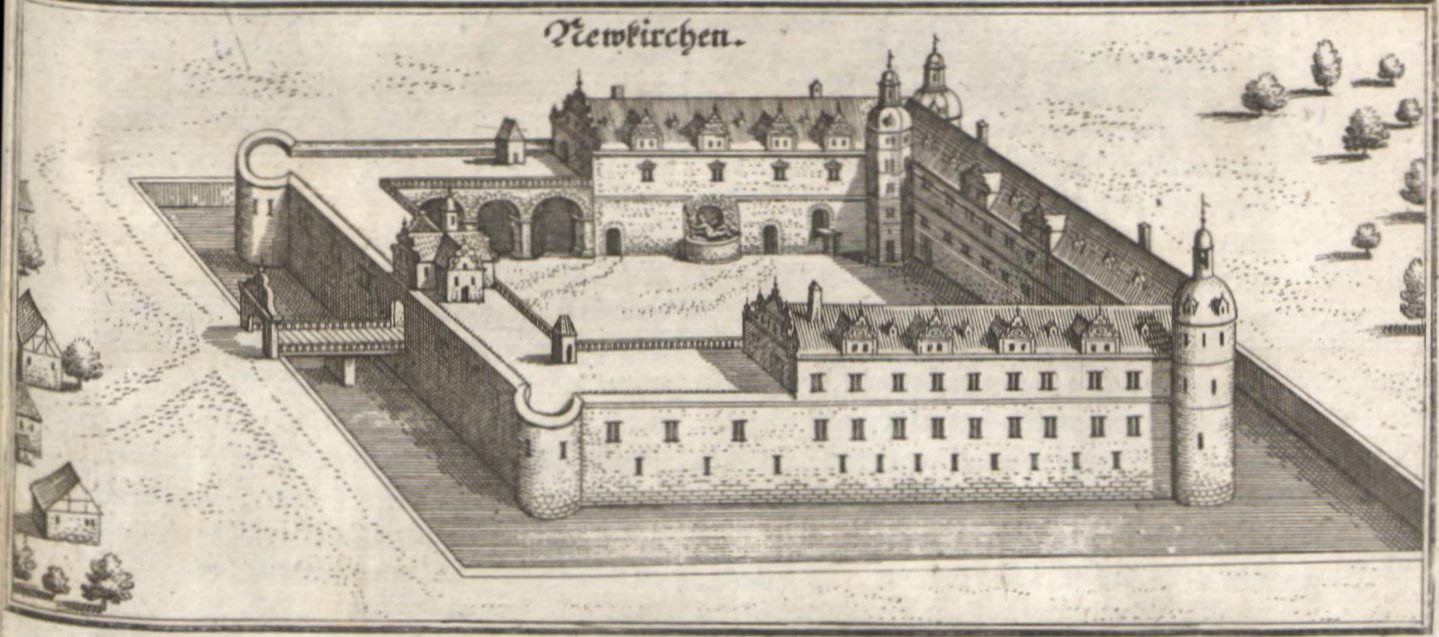 Der Bau des Schlosses wurde im Jahre 1570 durch Graf Johann IV von Nassau-Saarbrücken (05.04.1511 - 23.11.1574), dem letzten Graf dieser katholischen Linie begonnen, und gegen 1585 von seinem Vetter und Erben Graf Albrecht von Nassau-Weilburg (26.12.1511 - 11.11.1593), der evangelischen Linie vollendet. Es stand auf dem Gebiet des heutigen Oberen Marktes, dem Synagogenplatz, der Irrgartenstraße und der Rödelgasse.